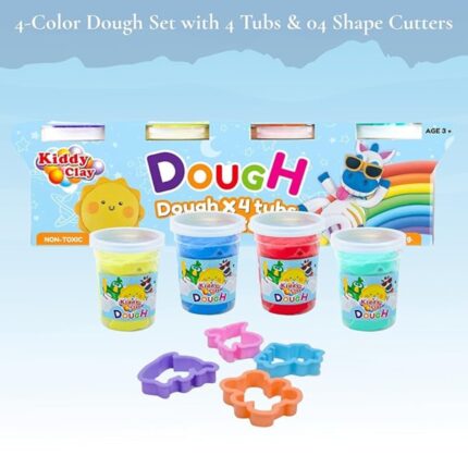 Kiddy Clay 4 Colours Modelling Dough Set – 25g Each – 4 Tubs, 4 Fun Shape Cutters, Soft, Air-Drying Clay for Creative Crafting, Packed in Paper Box, Ideal for Arts, Crafts & DIY Projects – 100g
